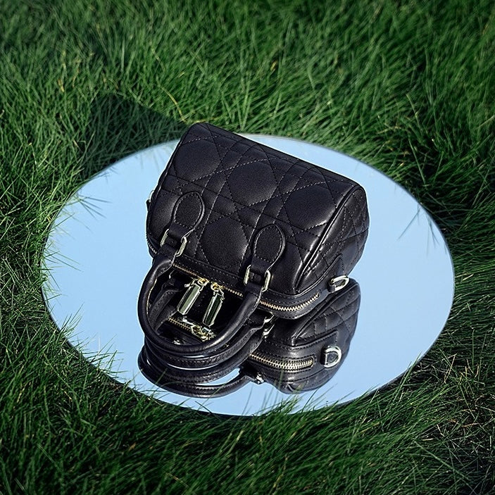 Quilted Genuine Leather Boston Clutch Bag for Elevating Elegance
