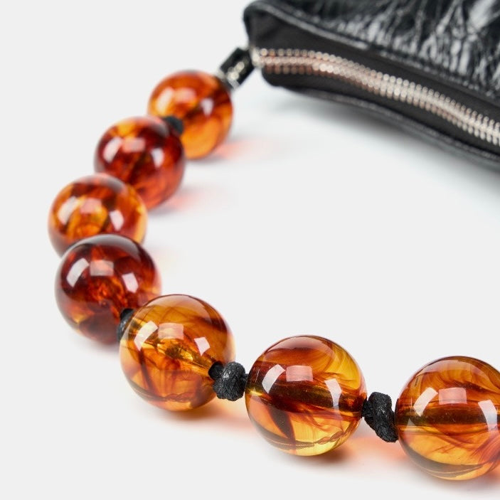 Genuine Leather Pleated Beaded Chain Crossbody Bag in Luxe Black & Angola Red