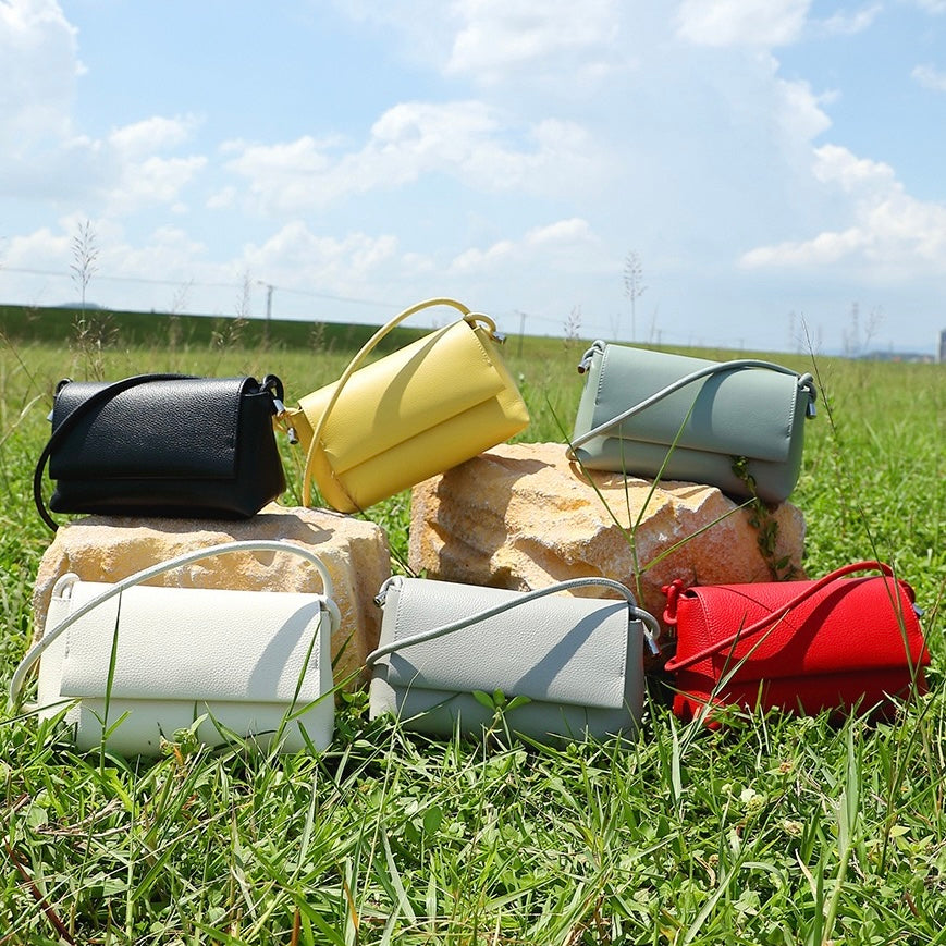 Introducing the Women's Simple Multicolor Genuine Leather Compact Crossbody Bag, a sophisticated addition to your accessory collection. Expertly crafted from genuine top-grain cowhide, this medium-sized marvel exhibits a trendy small square silhouette that seamlessly combines simplicity with charm.