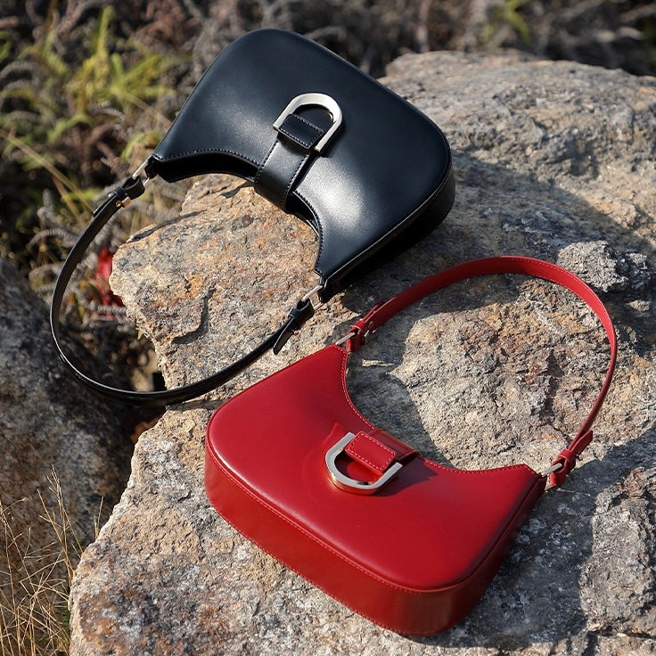 Soft Top-Grain Leather Minimalist Baguette Shoulder Bag
